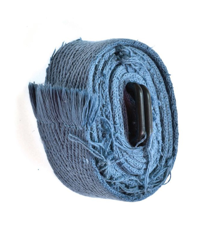 Стильный текстильный ремень, декорированный полоской и фирменным логотипом. Застежка на металлическую пряжку. Отличный вариант на каждый день.